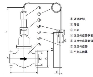 反之,當被控介質溫度低於設定值時,感溫液體收縮,彈簧複位推動閥芯開啟,增加熱媒介質流量,使被控介質溫度趨於升高。循環往複,從而使被控介質溫度始終保持在設定溫度值的允許範圍內。