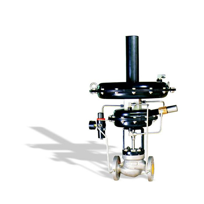 自力式壓力調節閥間接作用式調節閥,增加了一個指揮器(先導閥)它起到對反饋信號的放大作用然後通過執行機構,驅動主閥閥瓣運動達到改變閥開度的目的。如果是壓力調節閥,反饋信號就是閥的出口壓力,通過信號管引入執行機構。