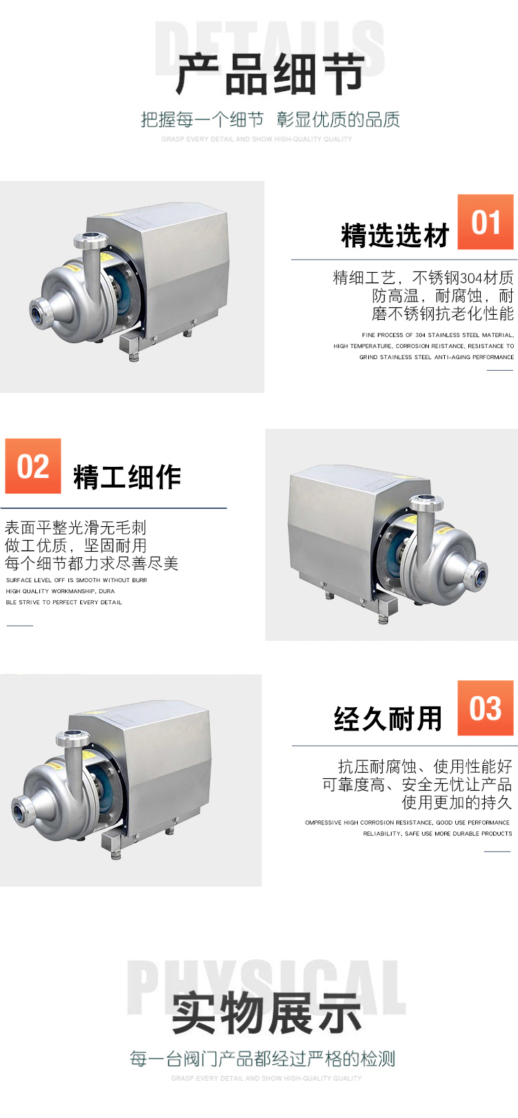 | 工作条件 | 卫生型离心泵是一种高低液位的输送装置,也是一种液位输送装置, |
