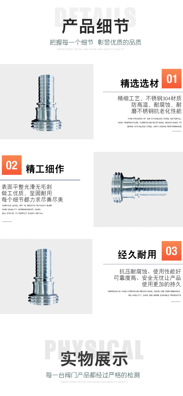 产品名称:SMS SS304不锈钢卫生螺纹高压软管接头