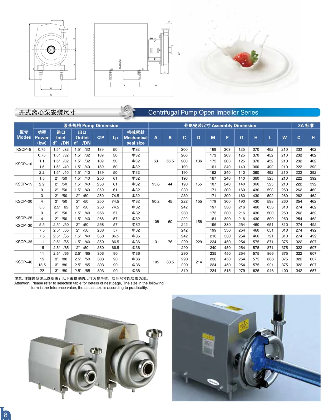 产品名称:不锈钢Ss304开式叶轮卫生型牛奶离心泵