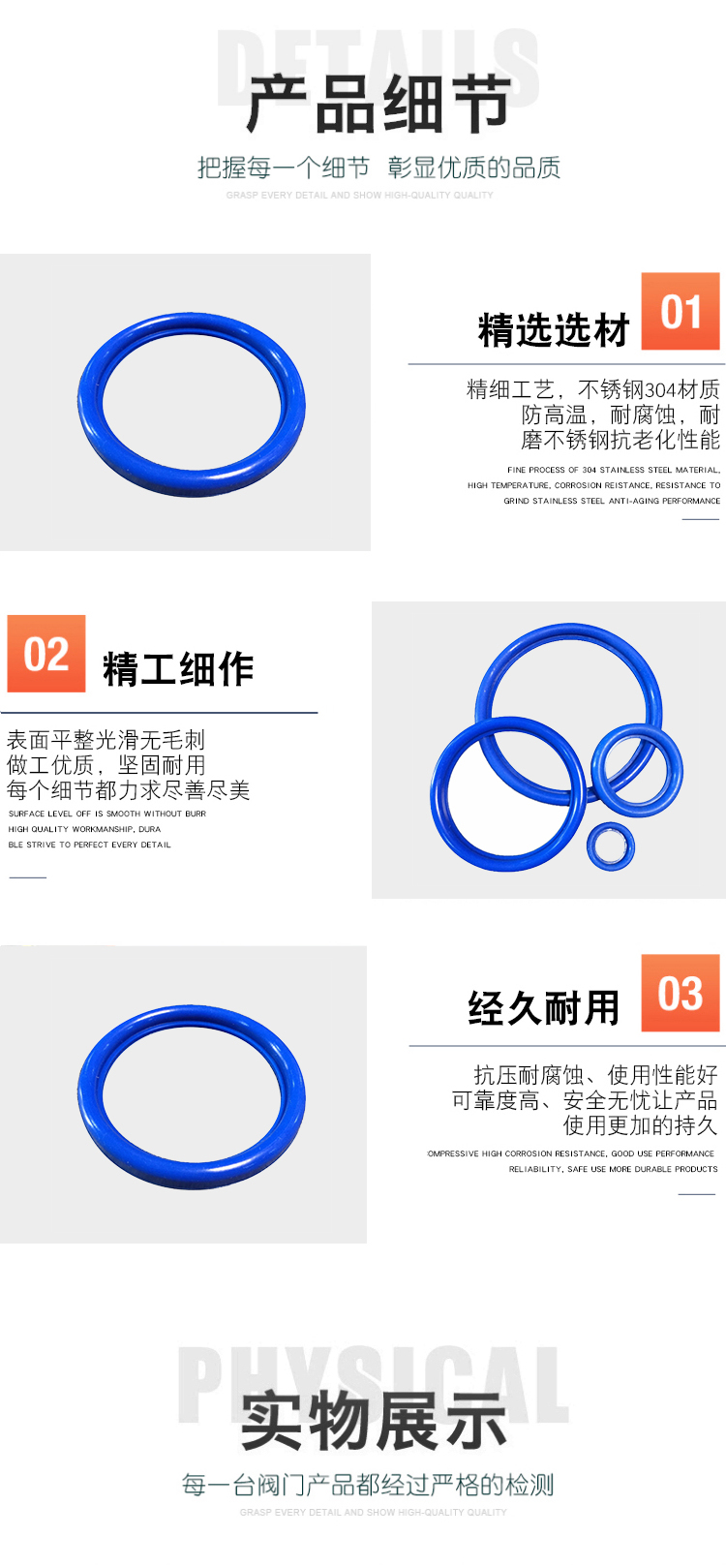材料:硅胶、三元乙丙橡胶、氟橡胶、丁腈橡胶、聚四氟乙烯
