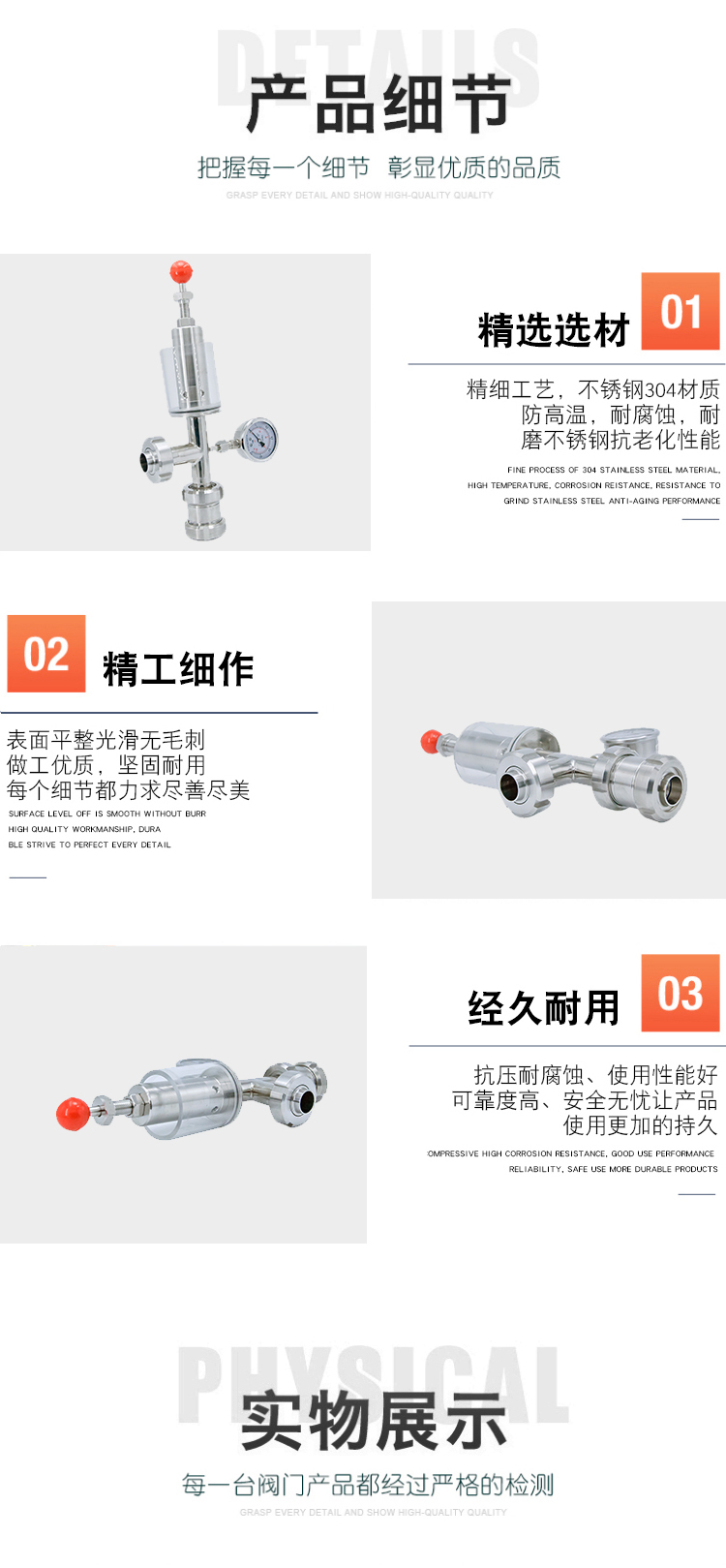 不锈钢SS304卫生型三卡箍排气阀带压力表排气阀