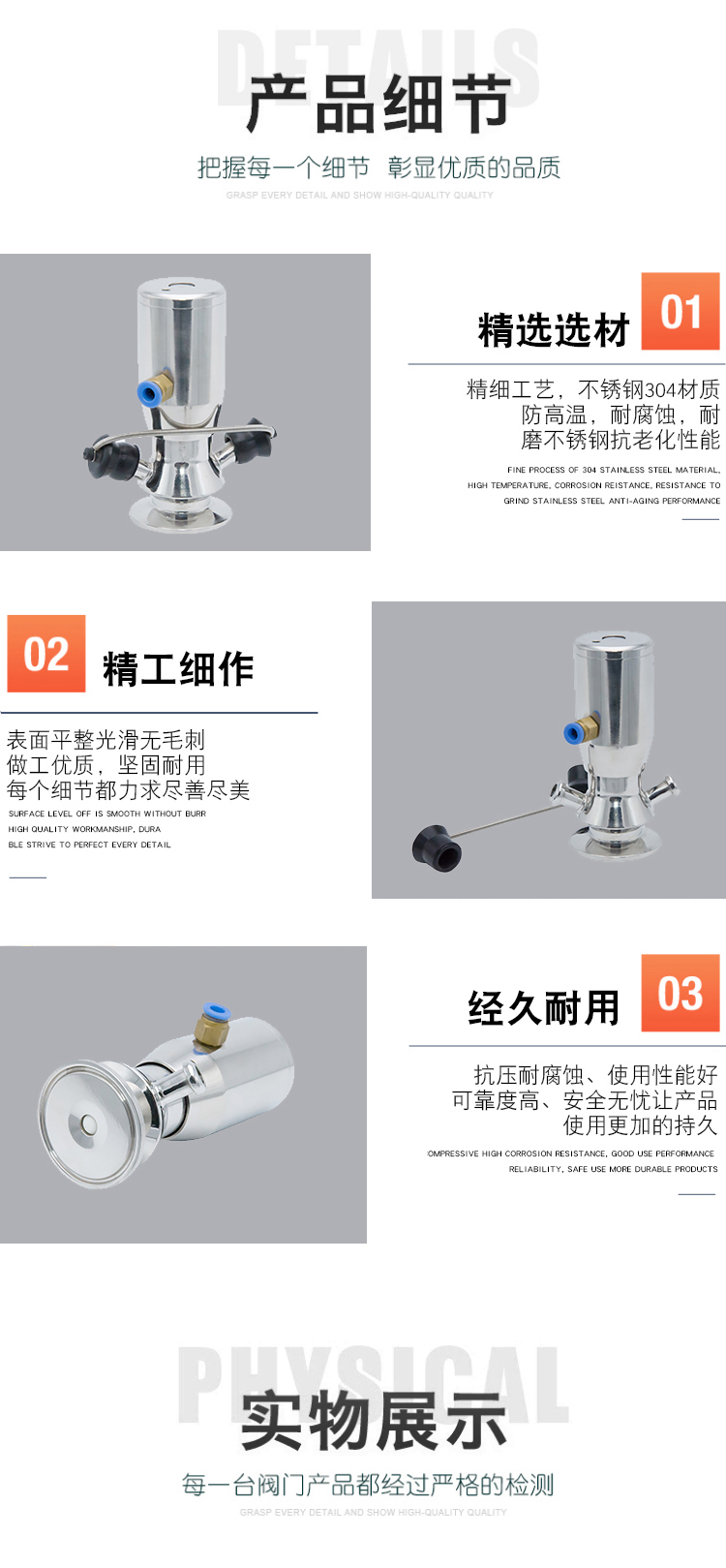 主要用于从罐或管道中提取样品。也可组装在罐底或管道底部,以排出留下来了。它适用于食品、化工、制药、化妆品和生物技术行业。以及所有其他需要卫生型设备的部门。