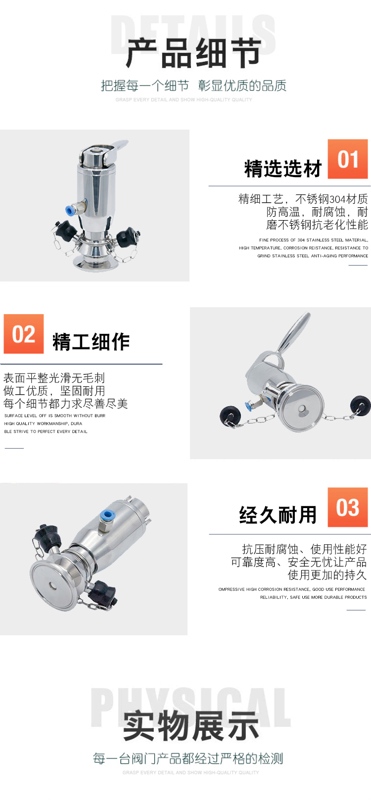 主要用于从罐或管道中提取样品。也可组装在罐底或管道底部,以排出留下来了。它适用于食品、化工、制药、化妆品和生物技术行业。以及所有其他需要卫生型设备的部门。