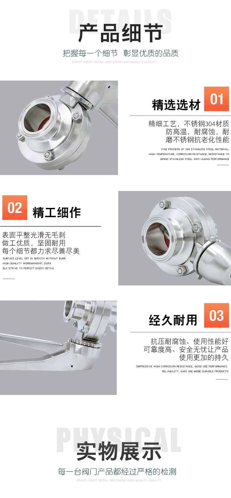 产品名称:卫生级不锈钢SS304快装手动蝶阀蝶阀