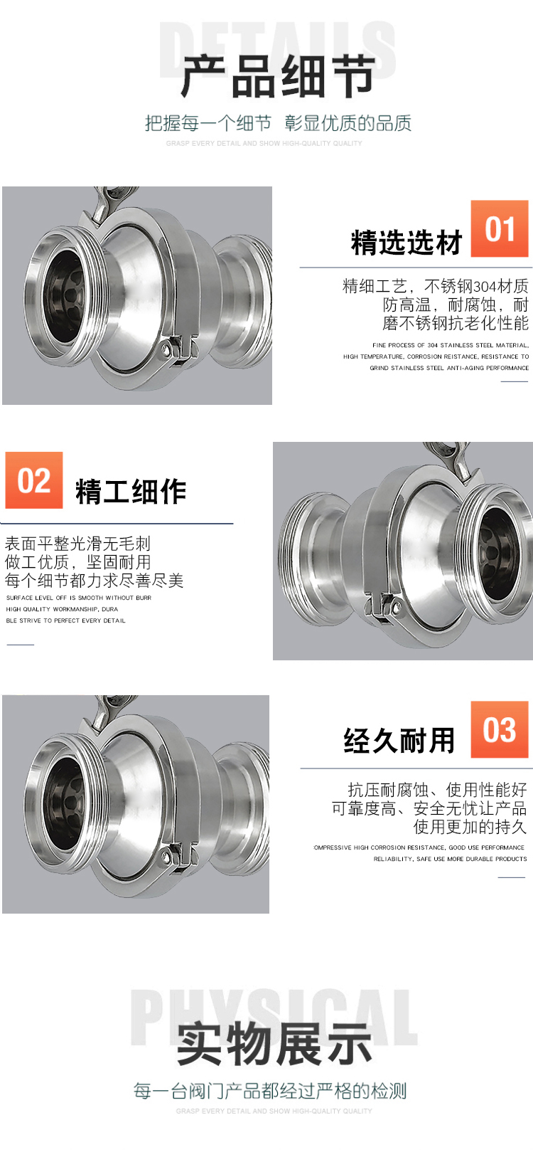 产品名称:卫生级不锈钢螺纹SMS止回阀