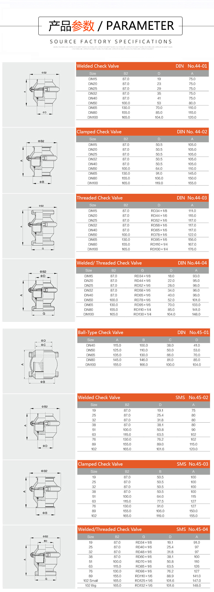 | 标准 | SMS,DIN,3A,IDF,ISO |