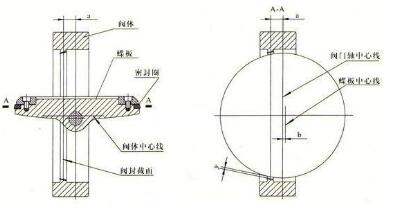 阀板回转中心(即阀门轴中心)于阀板密封截面形成一个尺寸A偏置,并与阀体中心形成一个尺寸B偏置。