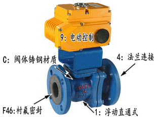 Q941F46-16C电动衬氟球阀 1、Q:表示球阀;