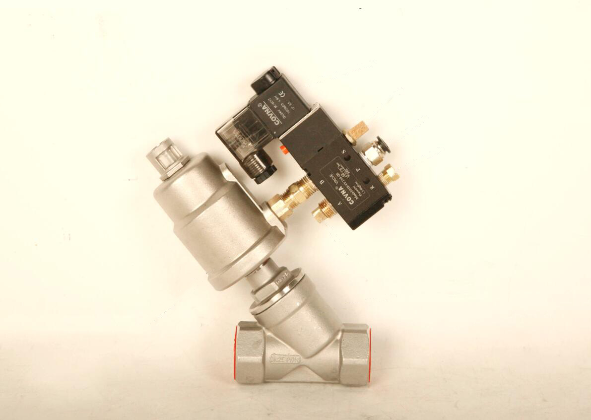 通常,三通电磁阀用于操作数控或无角阀座。这些角阀有一个连接口到活塞室。电磁阀控制室是加压或排气。所述的双作用角阀有两个连接件,不能由三通阀控制。它们可以通过一个五通电磁阀控制,加压一个端口和另一个端口通风,反之亦然。