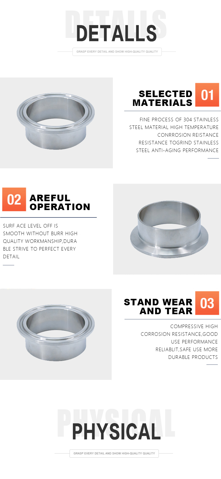Available requirement: blister packing for every piece of product, plastic caps for clamp connected products.