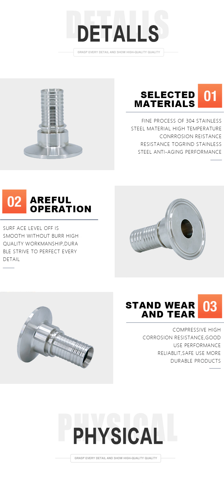 Available requirement: blister packing for every piece of product, plastic caps for clamp connected products.