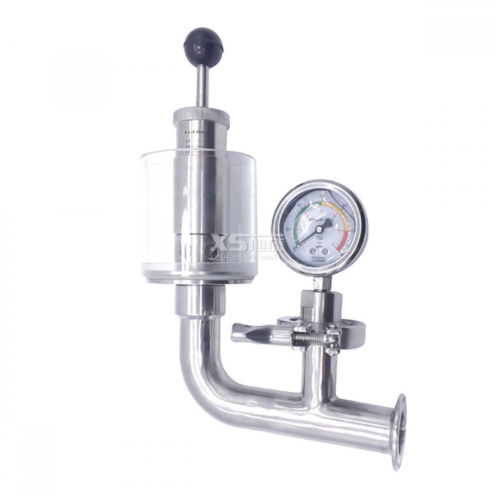 Stainless Steel SS304 Hygienic Tri Clamp Air Exhaust Valve Release Valve with Pressure Gauge