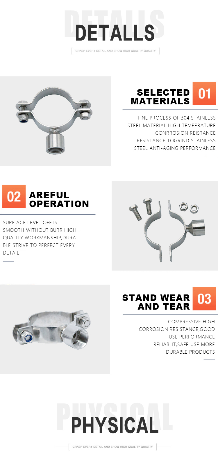 Available requirement: blister packing for every piece of product, plastic caps for clamp connected products.