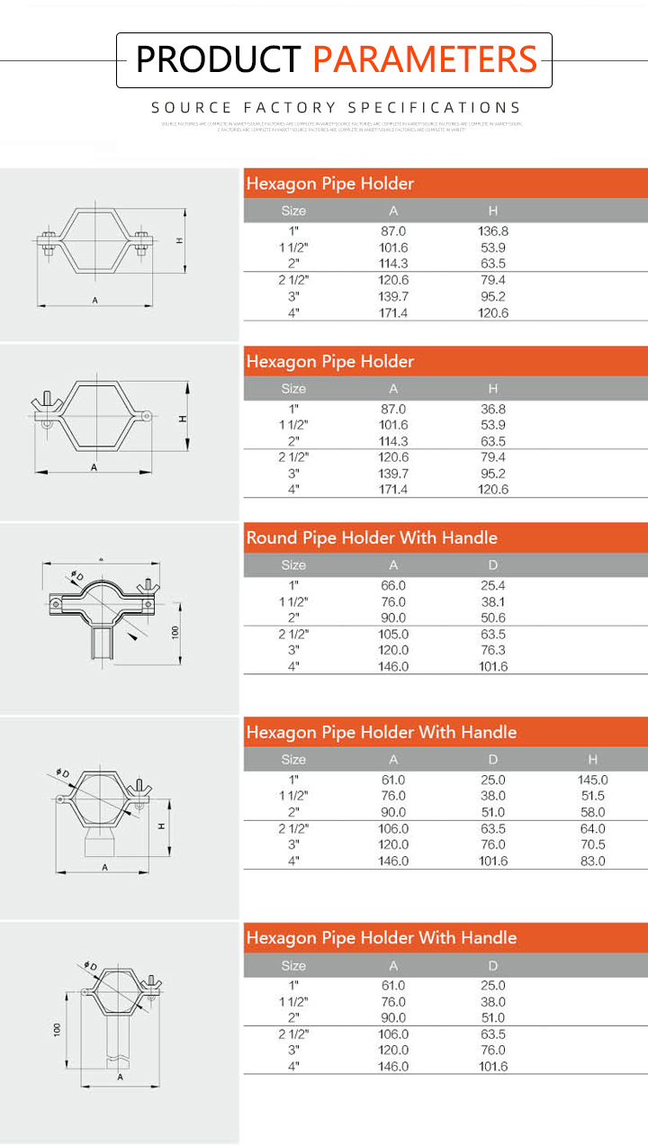 Stainless Steel Sanitary Pipe Clamp Pipe Holder TH1M