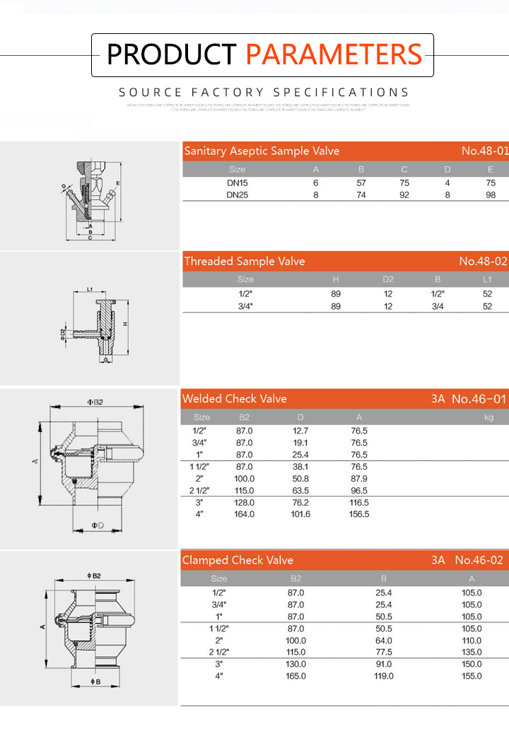 Available requirement: blister packing for every piece of product, plastic caps for clamp connected products.
